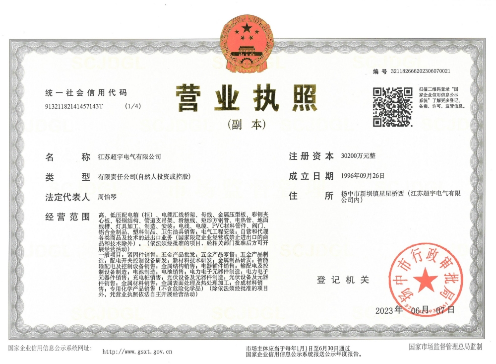 江蘇超宇電氣有限公司地處繁榮富饒的長江金三角,座落在聞名遐邇的生態示范區水上花園城市--揚中。公司成立于一九九六年,經過二十多年的發展進步,目前已形成專業化生產制造規模。 公司現有注冊資金3.0... ... [詳細>>]